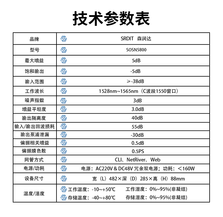 SOSN5800是一款拉曼光纤放大器,用于解决拉曼散射(SRS)效应,有效克服四波混频等非线性效应的影响,并改善系统的光信噪比(OSNR)。